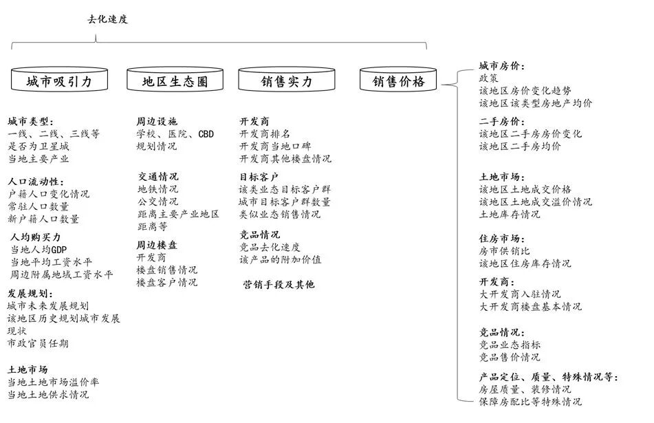 由于项目的定价较为特殊,我们首先从供需着手。简单而言影响真实供需的有四个部分:即城市吸引力、地区(也可以说小区)生态圈、销售实力以及价格。